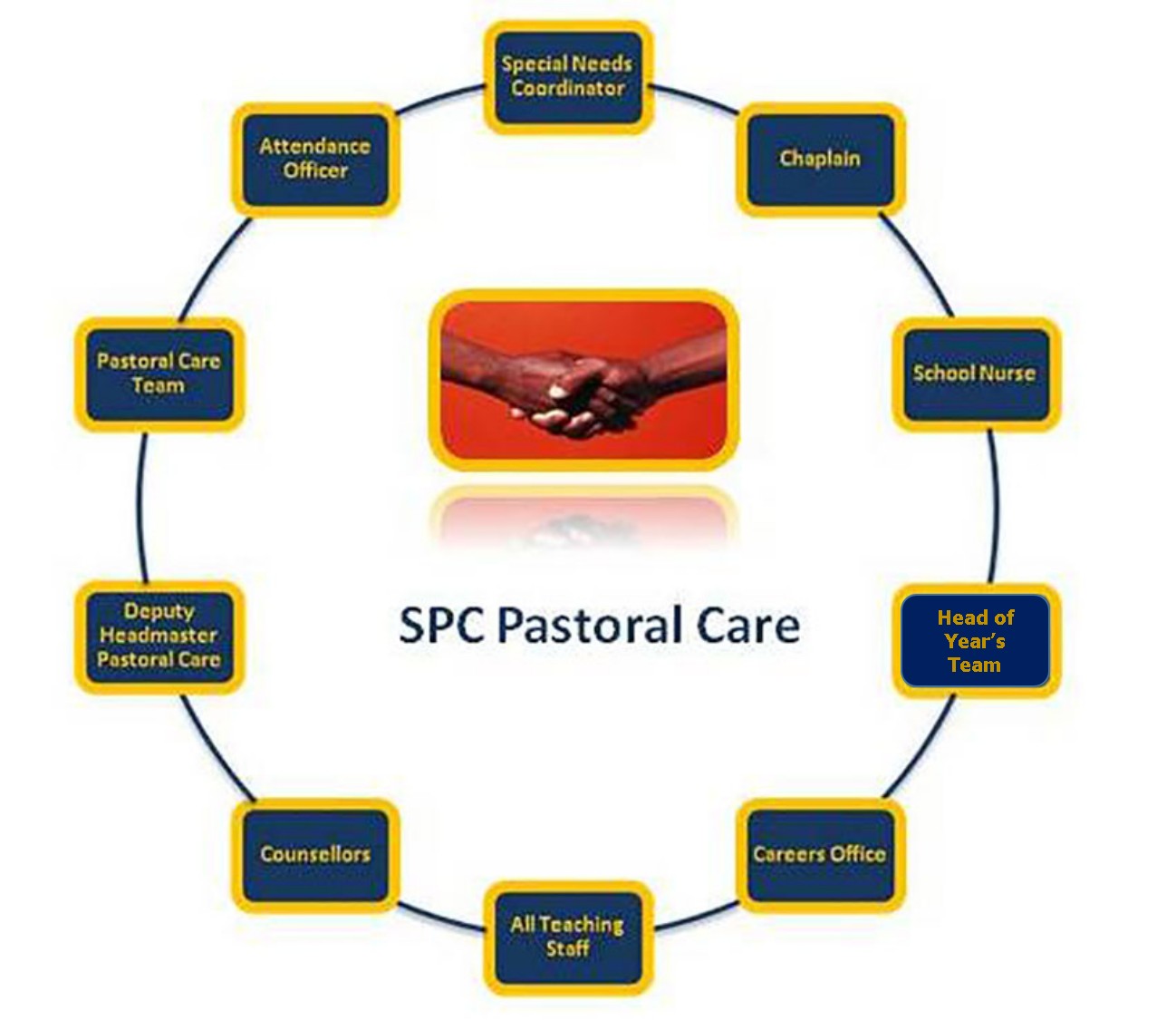 - All staff contribute to Pastoral Care